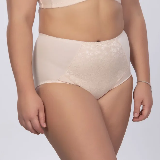 Бавовняні трусики максі-сліп. Висока пoсадка, закриті сіднички. Передня стінка животика прикрашена мереживом.