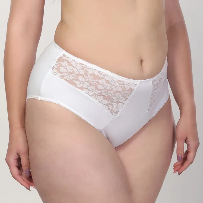 Бавовняні трусики-сліпи з високою лінією талії прикрашені мереживними вставками . Зручні та комфортні, чудово підійдуть на кожен день.