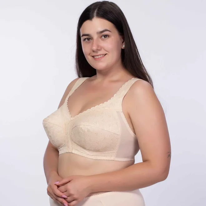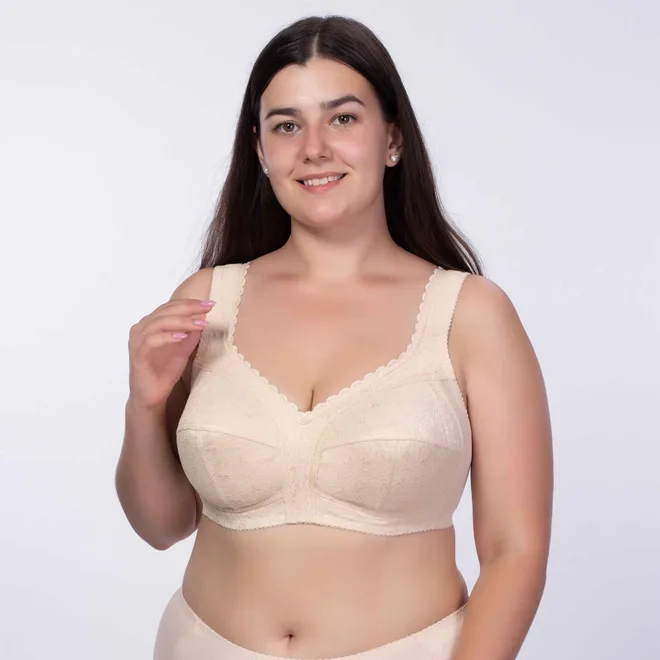 Бюстгальтер з м’якими чашками без каркасів з еластичного, трикотажного та мереживного полотна.