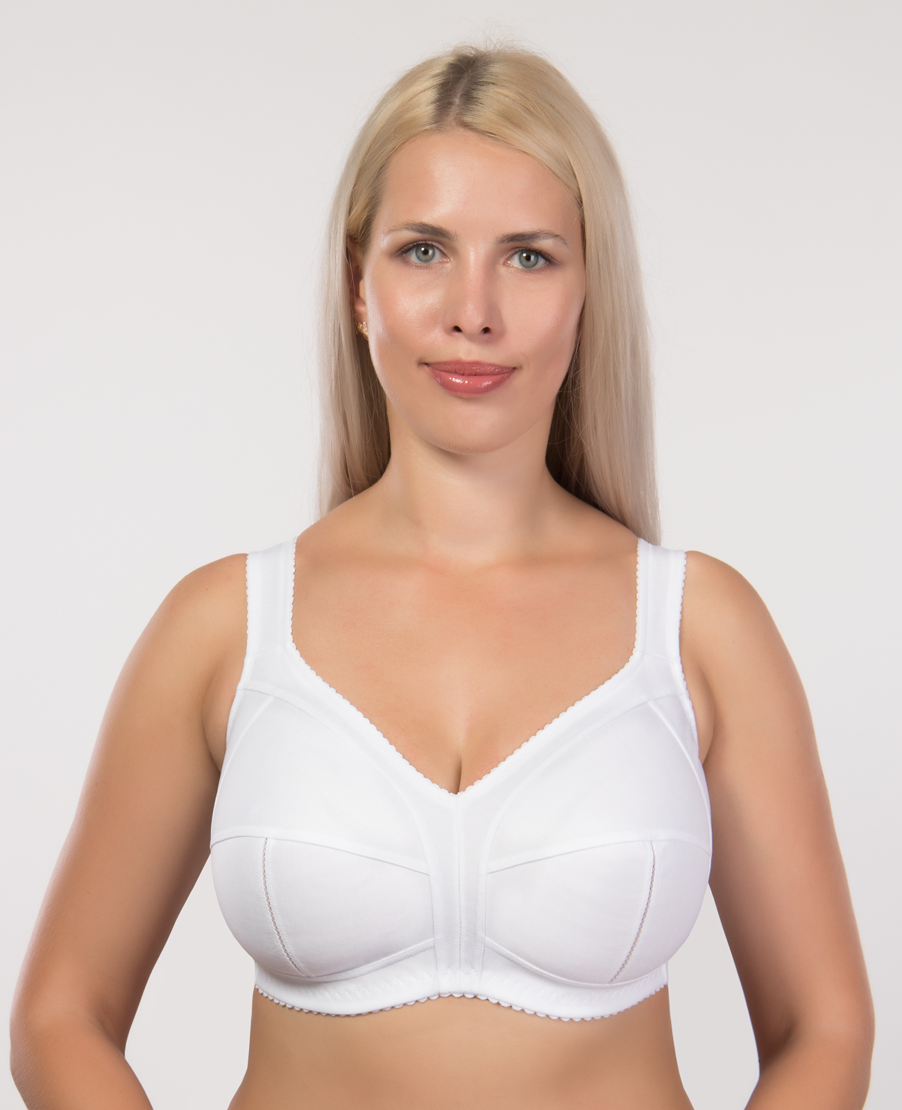 Бюстгальтер з м’якими чашками без каркасів з еластичного і трикотажного полотна. Розширені комфортні бретелі, чашки і ластовиця дубльовані бавовняним полотном. Оздоблення – декоративний шов.