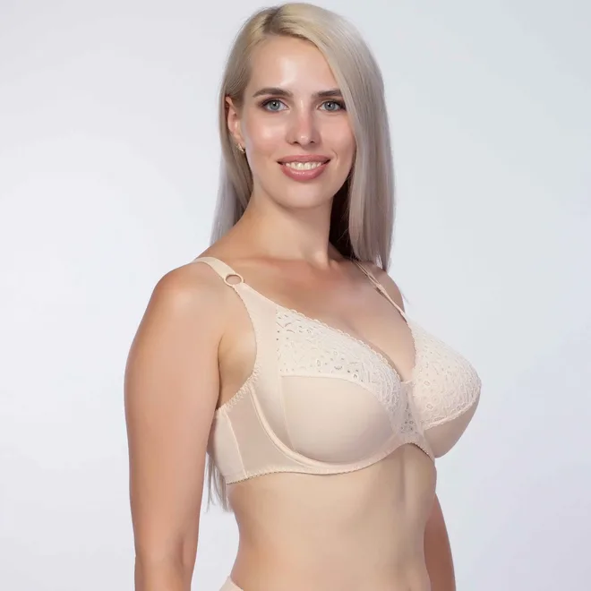 Бюстгальтер з м’якими чашками з еластичного полотна і мережива і трикотажного полотна з бічної коригуючою деталлю.