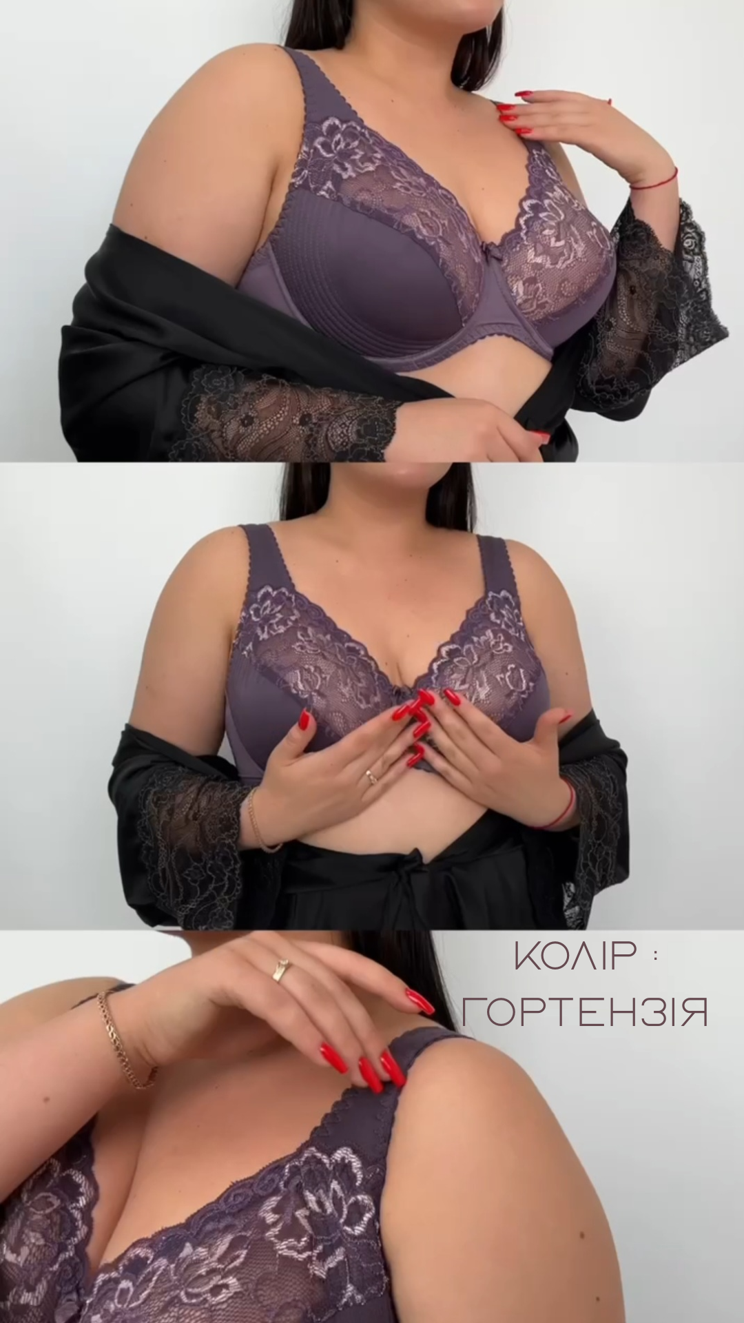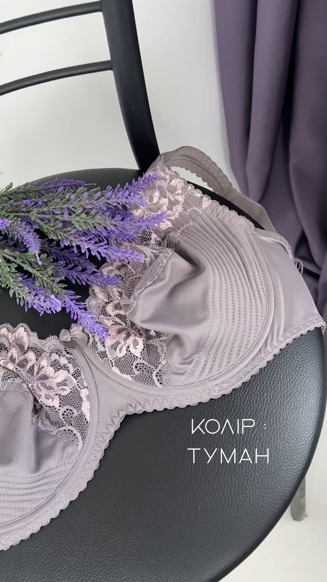 Бюстгальтер від Латвійського виробника. Бюстгальтер на кісточках з м’якими чашками та бічною підтримкою . Верхня частина чашок прикрашена еластичним мереживом. Бретелі м’які, дубльовані тонким поролоном, регуляюються позаду.