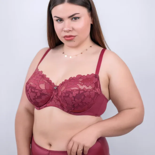 Бюстгальтер на кісточках з напівм’якими чашками. Чашки дубльовані з середини 100% бавовняним полотном. Горизонтальні та вертикальні шви придають бюсту округлу форму. Ідеальна фіксація поясу бюста забезпечується завдяки гнучким вертикальним пластиковим пластинам по боках.